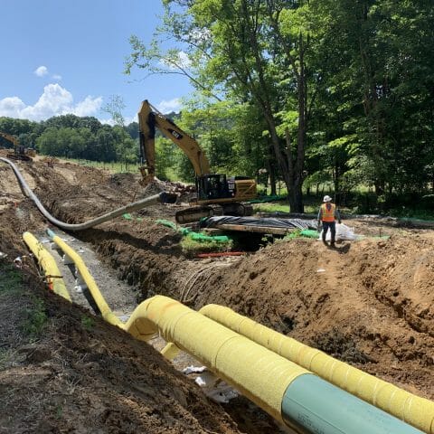 We installed approximately 7,250 LF of 20” HDPE DR9 in conjunction with two additional steel gas pipelines for this project. The waterline was installed to convey freshwater to various well pad impoundments for fracking. We also installed one 26” Cased bore under Pennsylvania Route 21 and two stream crossings as part of this project. Some of the unique challenges on this project were traversing three winch hills and installing the waterline with the other two steel gas pipelines in the same 100’ wide ROW because poly lays at a much different pace than steel. Most of this line was placed in its own ditch (single) except at stream crossings, where all pipelines were placed in one large common ditch. PROJECT DETAILS: Location: Pennsylvania 21208 - Creek Crossing 5-15-19 (7) 21208 - Creek Crossing 7-9-19 (4) Close 21208 - Creek Crossing 5-15-19 (7) 21208 - Creek Crossing 7-9-19 (4)