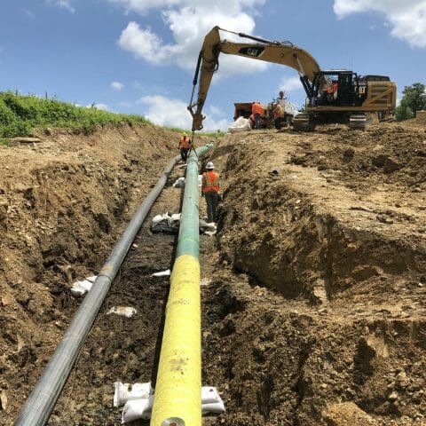 IKPS installed approximately 6,855 LF of 12” HDPE DR9 in conjunction with either a 20” Steel or 12” Steel pipeline into one common ditch for both pipelines. The project included a 16” cased bore and a stream crossing. The waterline tied into an existing 20” HDPE waterline that the client was using for conveying fresh water to well pads for fracking. Since most of this line was placed into a common ditch with a steel pipeline, we excavated a wider ditch than usual. HDPE lays differently than steel, so the pace of installation was significantly different. In addition, there were two winch hills, and the tie-in to the existing waterline was in a difficult location due to the 20” steel gas crossing at the same location. PROJECT DETAILS: Location: West Virginia DSCF0012 IMG_0798 Close DSCF0012 IMG_0798