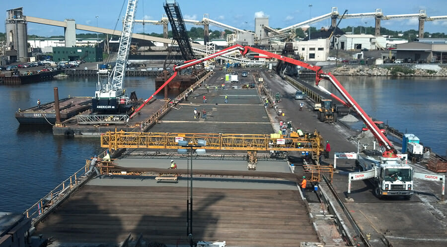 • Placed over 5,500 CY of concrete including over 1000 cast in place concrete rail ties on 900’x110’ coal loading pier