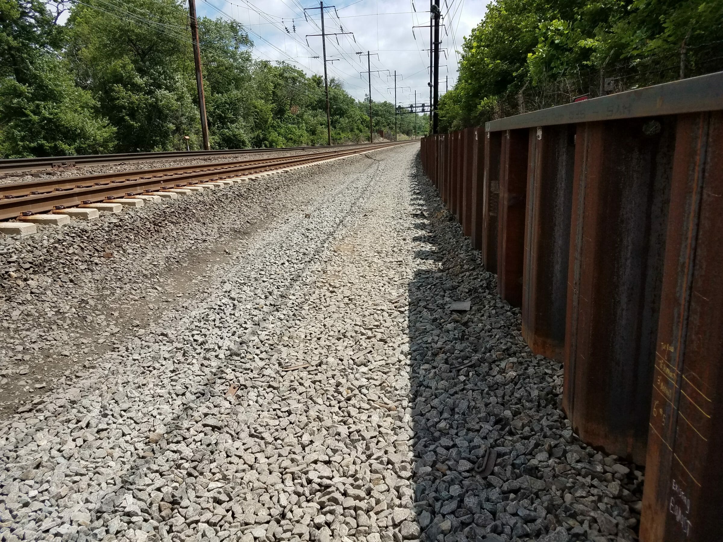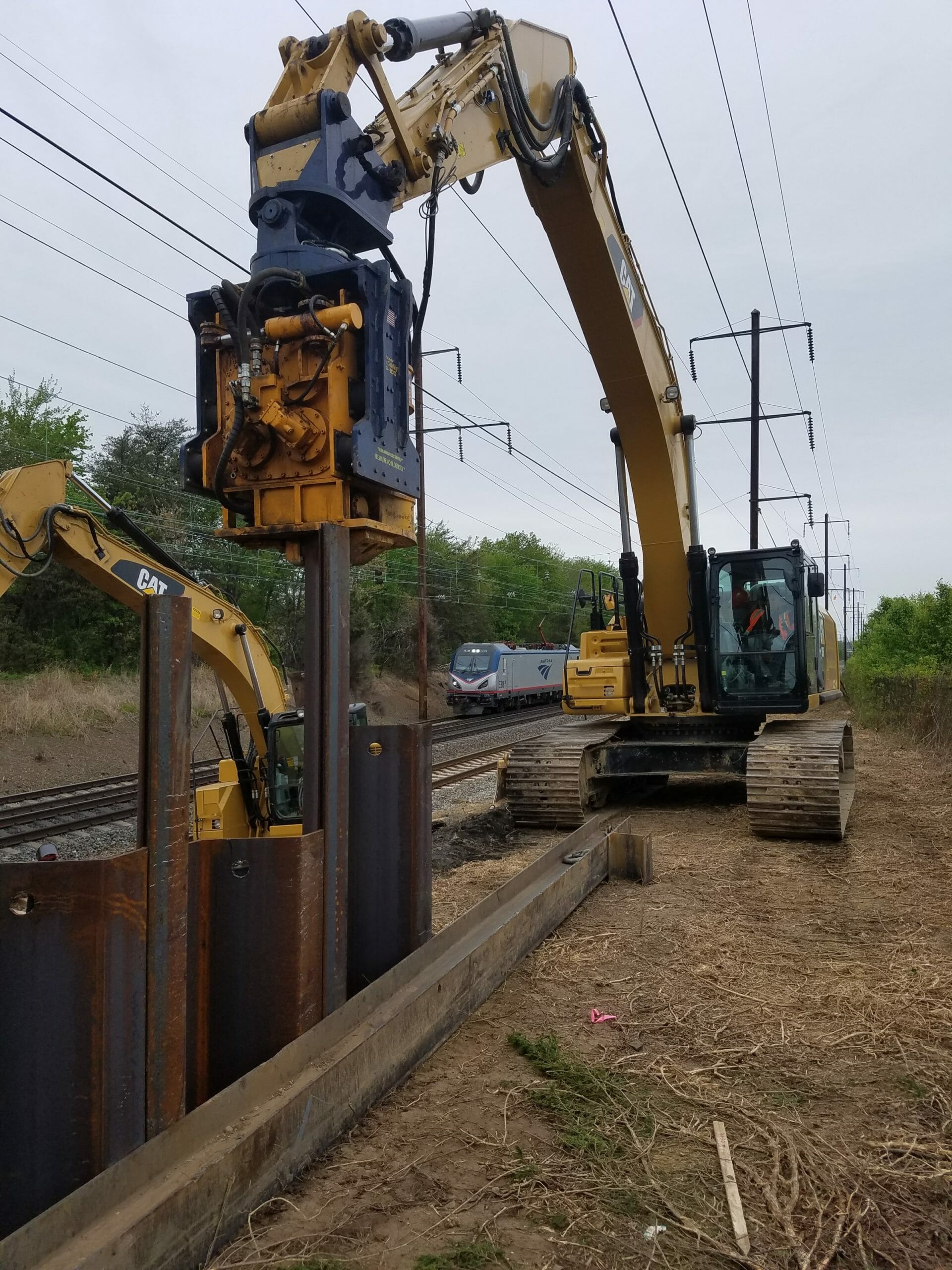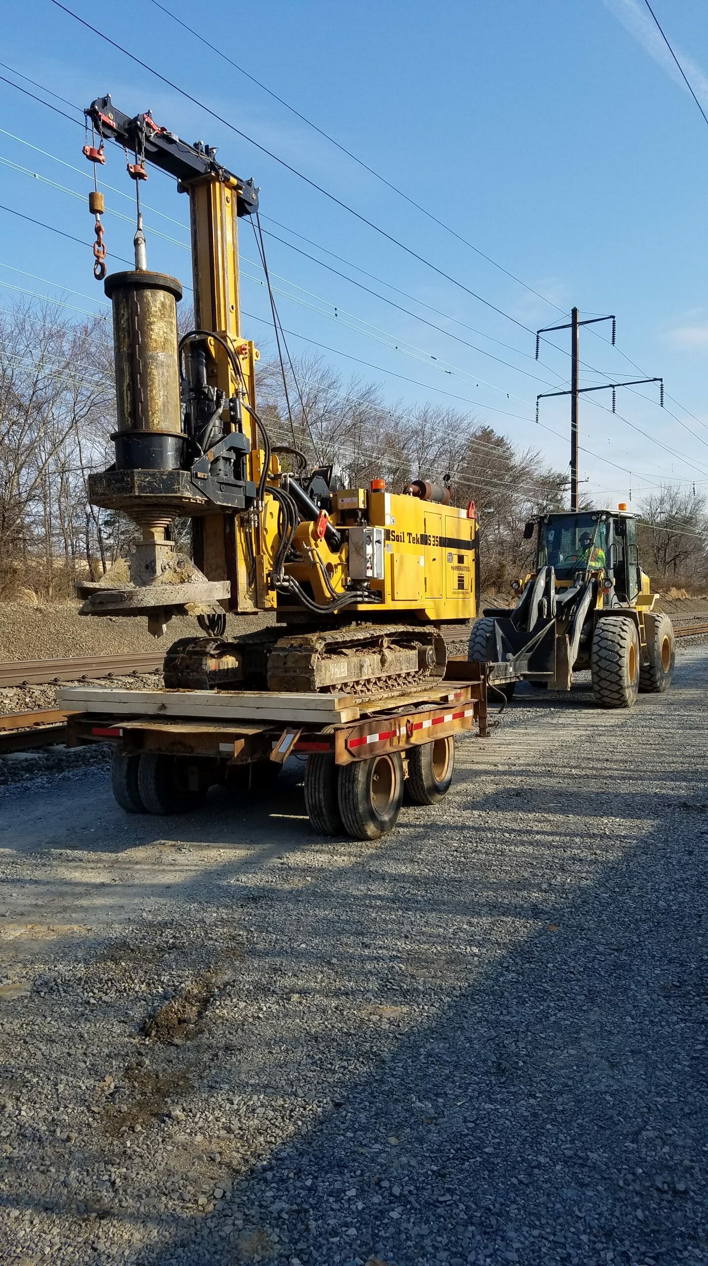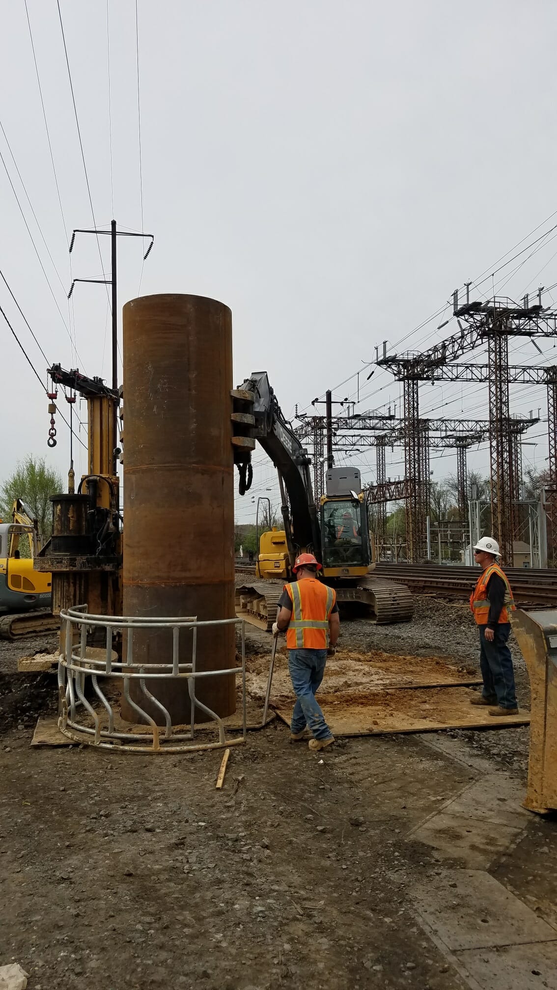 This project consisted of several different contracts to instal a new high-speed interlock along Amtrak’s northeast corridor allowing their commuter trains to switch between Tracks, 3, 2, and 1 at high speed, CSX freight trains to move from Track 1 to Track 2 and makes provisions for the interlock expansion to accommodate an eventual fourth track expansion. The first contract included installation of 82 new drilled foundations for the new overhead catenary system, which are 48-in. and 42-in. in diameter and 34-ft. deep. They were drilled with a low head room unconventional drill to install without requiring overhead transmission electrical outages. Installed steel rebar cages around power lines and constructed three precast retaining walls to construct the new Hanson Interlocking: 41 foundations on the east side of the tracks and 41 on the west side of the tracks. Constructed a temporary access road to access foundations on the west side of the railroad and installed 28 down guy foundation attachment points for future down guy connections. Construction was in confined limits, including drilling the shaft, installing the casing liner, setting the steel rebar cages, layout for catenary pole bolts, and placing the concrete for the catenary pole foundations. Kokosing used a large excavator capable of reaching the overhead power lines and a TCC 650 crane to install steel caissons in confined limits for the new foundations and worked in/around Pepco and Amtrak transmission lines during set power outages. To pour concrete for the new foundations on the west side of the railroad, we used a conveyance method (temporary pump hose and pipe) under the tracks as there was no access for a concrete truck. The second contract consisted of constructing a one-mile (4,700-ft.) long access road along Track 1 between the WMATA property line and adjacent to the track, with the majority constructed of permeable materials. Amtrak obtained the permits from Maryland Dept. of the Environment (MDE) and held a separate contract to maintain the site for environmental compliance. Kokosing obtained a WMATA Real Estate Permit to move a WMATA security fence at Amtrak’s request and coordinated work with WMATA watchmen and inspection staff. Kokosing surveyed for layout one-mile sheet pile wall, stormwater management facility, and for Amtrak’s catenary poles. To support the new access road, Kokosing installed over 3,000,000 lbs. of PZ sheets, 13-ft. to 52-ft. long, 15,000 TN of new aggregate, and a mile of new drainage pipe. The new road was designed/installed to function as a sand filter for run off. Work included rough grading via earth moving equipment to provide a platform for the sheet pile driving. Installed 5,200 LF sheet piles along the catenary pole line to retain the fill material for the road. Top of finished road is 12-in. below the top of Track 2’s east rail. Kokosing used a Link Belt TCC 750 crane to install the steel sheeting in confined limits and worked in/around Pepco and Amtrak transmission lines during set power outages. Installed 5,000 LF of 12-in. HDPE N-12 underdrain pipe 3-ft. below grade which ran parallel to the railroad 15-ft. to 30-ft. away. The third contract consisted of installing ¾ of a mile of new electrical duct bank which will supply power to the new interlocking system. The edge of the duct bank is just over 12-ft. away from Track 1. The new 2 x 4-in. reinforced concrete encased duct bank is 5-ft. deep. Due to the proximity of the track and Amtrak’s support of excavation specification, crews installed sheet piling along both sides of the duct bank for excavation. A sliding template and the Movax were used to expedite construction and to keep the required clearances with the overhead catenary and steady span electric lines. PROJECT DETAILS Project Owner: Amtrak Project Value: $20,610,551.88 Delivery Method: Design-Bid-Build 2021.10.18 E619W 2017.06.23 DL (4) Install sheetpile retaining wall 2017.11.18 SM (1) 2017.04.19 SM (1) 20190227_123339 20190227_085148 Lowheadroom equip to install casingpipe Close 2021.10.18 E619W 2017.06.23 DL (4) Install sheetpile retaining wall 2017.11.18 SM (1) 2017.04.19 SM (1) 20190227_123339 20190227_085148 Lowheadroom equip to install casingpipe
