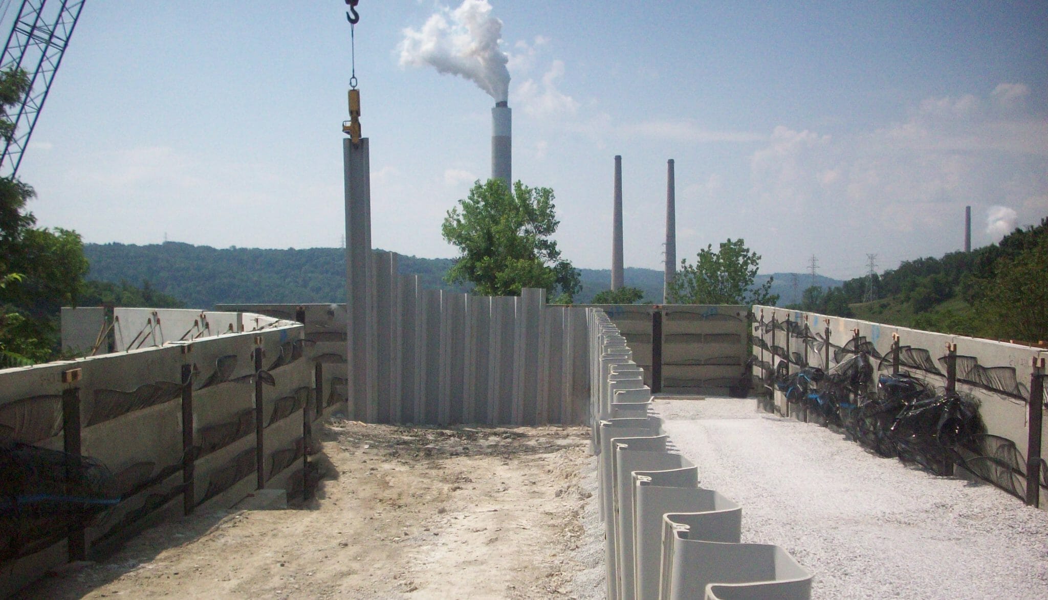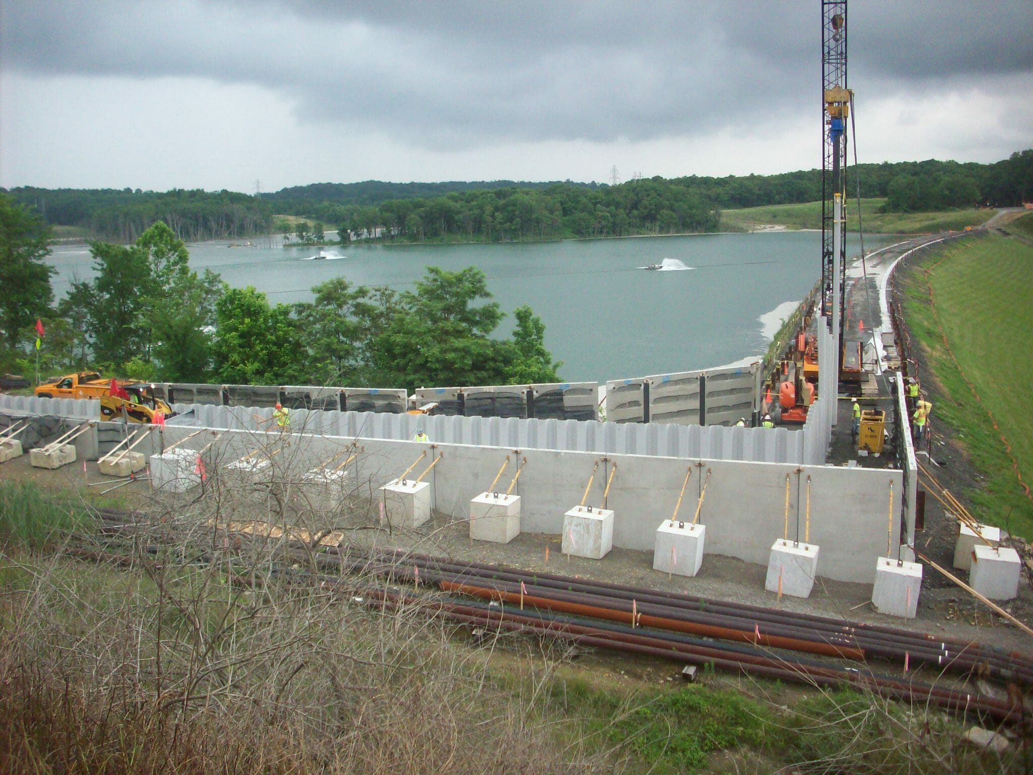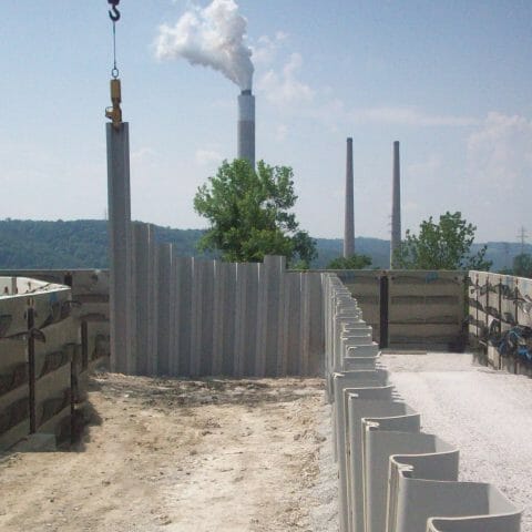 Transportation FLY ASH POND DAM > Projects > Fly Ash Pond Dam INSIDE THE PROJECT In Brilliant, Ohio, Kokosing constructed a very challenging dam raising project. Due to increased capacity needs of the Owner within the existing limits, the dam needed to be raised an additional 13 feet. The solution to building this on a small footprint was to install back-to-back mechanically stabilized earth (MSE) walls constructed on top of the existing dam. Seepage was controlled by installing vinyl sheet piling through the roller compacted concrete zone of the existing dam and into the clay core. The existing emergency spillway was raised using mass concrete and traditional cast-in-place concrete training walls to direct flow into the channel. The project also required improvements to an existing single-lane access road providing access to the work area from a local county road. Kokosing met the challenge and completed according to schedule. PROJECT DETAILS: Project Owner: Private Owner Location: Brilliant, Ohio Project Value: $6,800,000 Delivery Method: Design-Bid-Build CAPABILITIES: Noisewall / Retaining Wall Piling Close