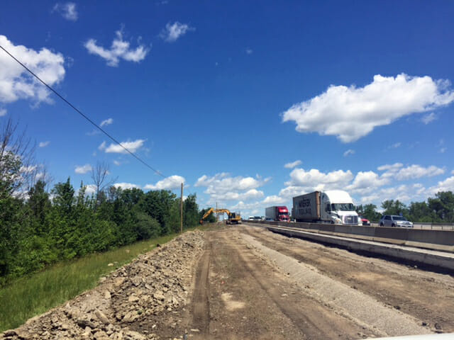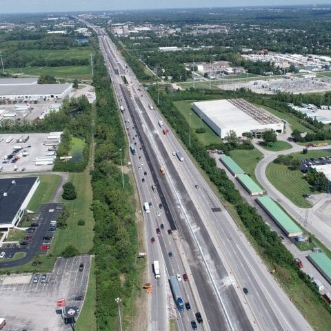 Transportation Franklin I-270 Interstate Reconstruction > Projects > Franklin I-270 Interstate Reconstruction The I-270 Reconstruction Project included the rehabilitation and widening of an 8 mile stretch of I-270 on the west side of Columbus. Work on the project included full-depth roadway widening, rehabilitation and widening of three sets of mainline twin bridges, median barrier installation, asphalt mill and fill of 3-4 lanes in each direction of travel, and construction of four noise walls on the east side of the northbound travel lanes. Major quantities include 129,000 sy of pavement removal, 210,300 lf of underdrain installation, 380,600 tons of asphalt pavement, 107,900 sf of noise wall, 145,000 lbs. of structural steel, and 581,700 lbs. of reinforcing steel. This project also included replacing and widening the decks on one set of twin bridges over Hayden Run Road, two slab bridges over Raymond Run Creek, and two slab bridges over Cramer Ditch. There is an extensive amount of asphalt on this project, which included over 380,000 tons of asphalt and 455,000 SY of milling/filling of the existing lanes in each direction. The total amount of asphalt accounted for approximately $20 million of the total contract amount. The other major items of work included in this project are the reconstruction of 18,500 SY of the existing concrete pavement at the south end of the project in the southbound direction, installing 108,000 SF of noise wall along 270 northbound around Hayden Run Road, 125,000 CY of excavation to be hauled to waste, and installing 2,900 LF of bored pipe underneath 270. PROJECT DETAILS: Project Owner: Ohio Department of Transportation Project Location: Columbus, Ohio Project Value: $58,400,000 Delivery Method: Design-Bid-Build Slipping Median Barrier Wall 2 Setting Noise Wall 2B Panels I-270 SB 6-20 Drone Pic from Roberts Road looking North 2 Close Slipping Median Barrier Wall 2 Setting Noise Wall 2B Panels I-270 SB 6-20 Drone Pic from Roberts Road looking North 2