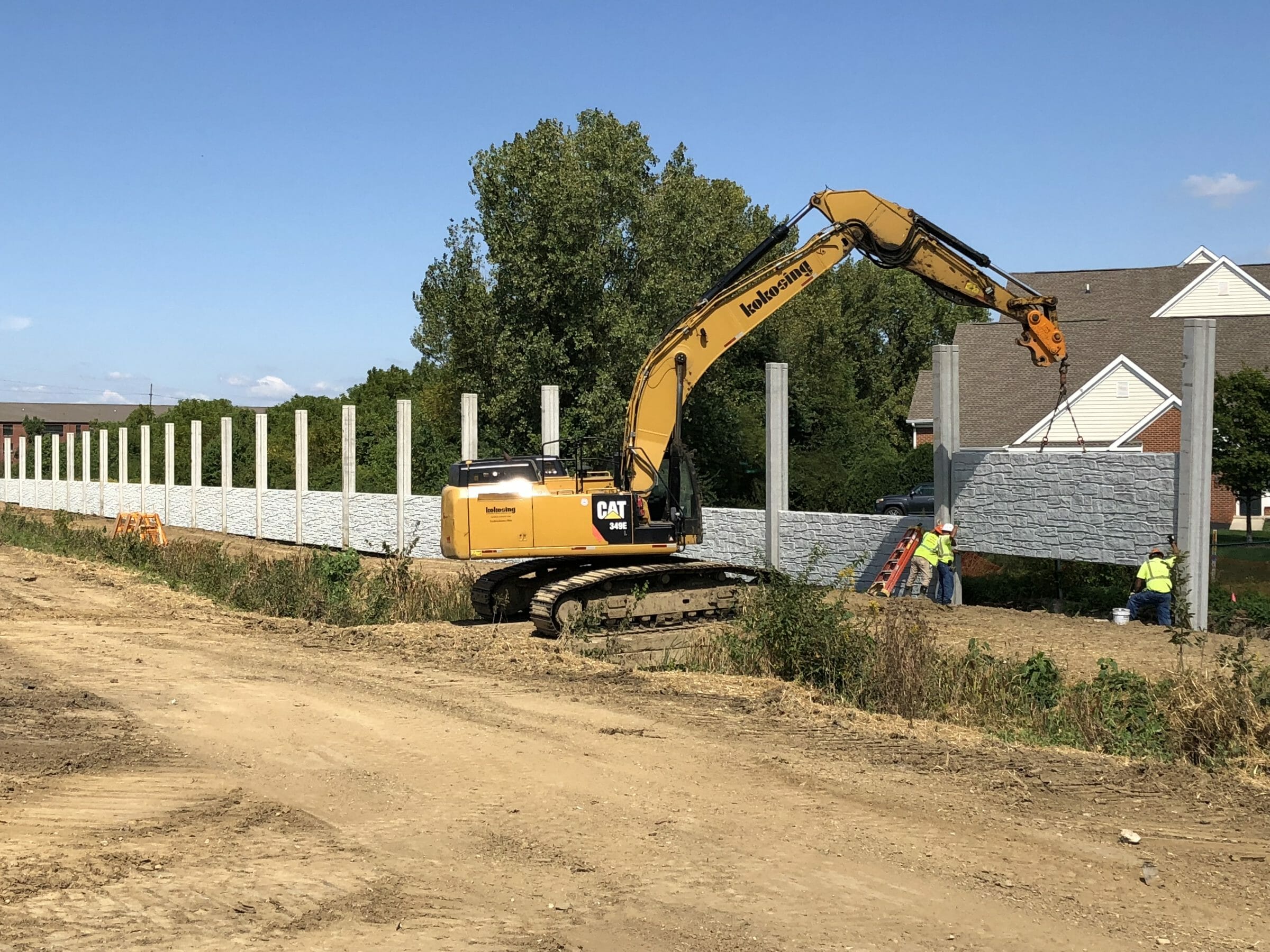 The I-270 Reconstruction Project included the rehabilitation and widening of an 8 mile stretch of I-270 on the west side of Columbus. Work on the project included full-depth roadway widening, rehabilitation and widening of three sets of mainline twin bridges, median barrier installation, asphalt mill and fill of 3-4 lanes in each direction of travel, and construction of four noise walls on the east side of the northbound travel lanes. Major quantities include 129,000 sy of pavement removal, 210,300 lf of underdrain installation, 380,600 tons of asphalt pavement, 107,900 sf of noise wall, 145,000 lbs. of structural steel, and 581,700 lbs. of reinforcing steel. This project also included replacing and widening the decks on one set of twin bridges over Hayden Run Road, two slab bridges over Raymond Run Creek, and two slab bridges over Cramer Ditch. There is an extensive amount of asphalt on this project, which included over 380,000 tons of asphalt and 455,000 SY of milling/filling of the existing lanes in each direction. The total amount of asphalt accounted for approximately $20 million of the total contract amount. The other major items of work included in this project are the reconstruction of 18,500 SY of the existing concrete pavement at the south end of the project in the southbound direction, installing 108,000 SF of noise wall along 270 northbound around Hayden Run Road, 125,000 CY of excavation to be hauled to waste, and installing 2,900 LF of bored pipe underneath 270. PROJECT DETAILS: Project Owner: Ohio Department of Transportation Project Location: Columbus, Ohio Project Value: $58,400,000 Delivery Method: Design-Bid-Build Slipping Median Barrier Wall 2 Setting Noise Wall 2B Panels I-270 SB 6-20 Drone Pic from Roberts Road looking North 2 Close Slipping Median Barrier Wall 2 Setting Noise Wall 2B Panels I-270 SB 6-20 Drone Pic from Roberts Road looking North 2