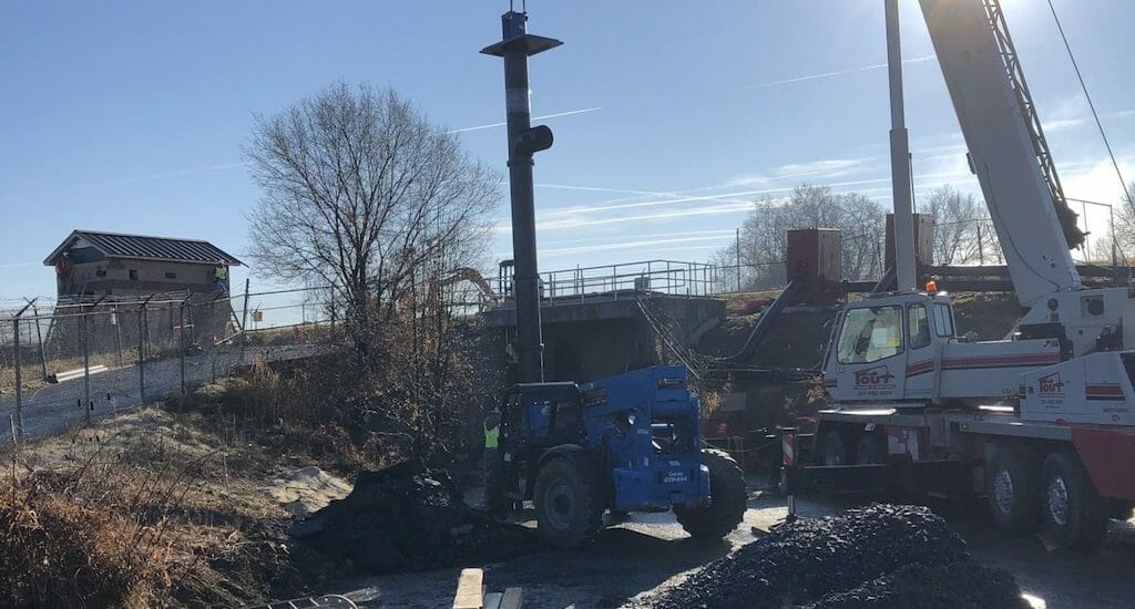 KEY CHALLENGES & PROJECT DETAILS Reconstructed Stormwater Pump Station #4 which activates when flooding occurs as 11% of the City of Frederick is in or near a 100-year floodplain. Installed two new 20-in., 30-ft. long vertical propeller pumps and motors with a capacity of 10,000 GPM each. Installed a temporary by-pass pumping system using two 8-in. pumps with a capacity of 5,000 GPM. Demolished the motor/diesel engine building and constructed a new control building and emergency generator. Cast-in-place concrete sump pump pit construction included saw-cutting the sump slab, excavation, and support of excavation. Constructed a Motor Control Center unit, control panel, generator, Automatic Transfer Switch unit, and HVAC. KEY CHALLENGES Constructed the 15-ft. deep cast-in-place concrete sump pump pit within a limited space. PROJECT DETAILS: Project Owner: City of Frederick Location: Frederick, MD Close