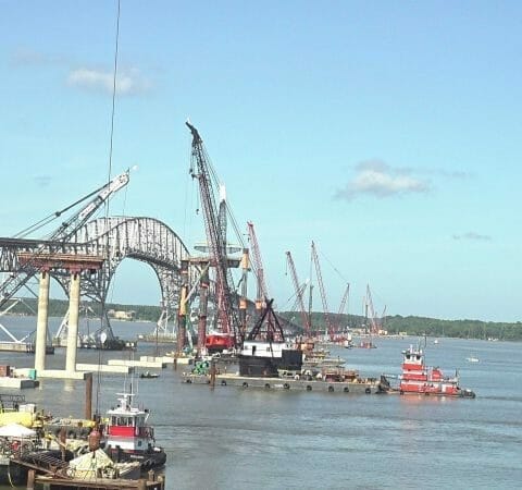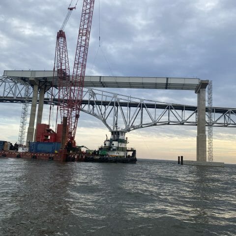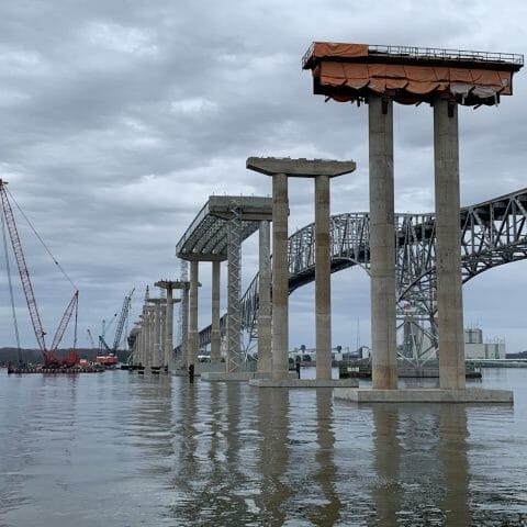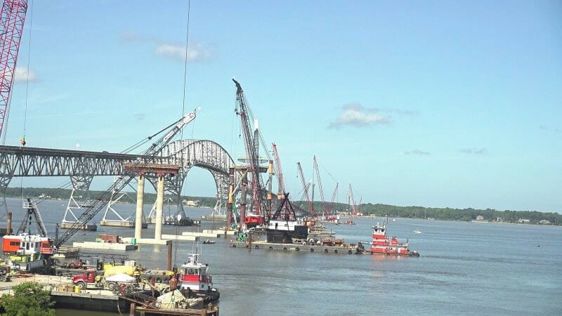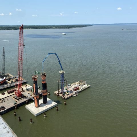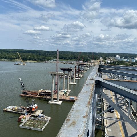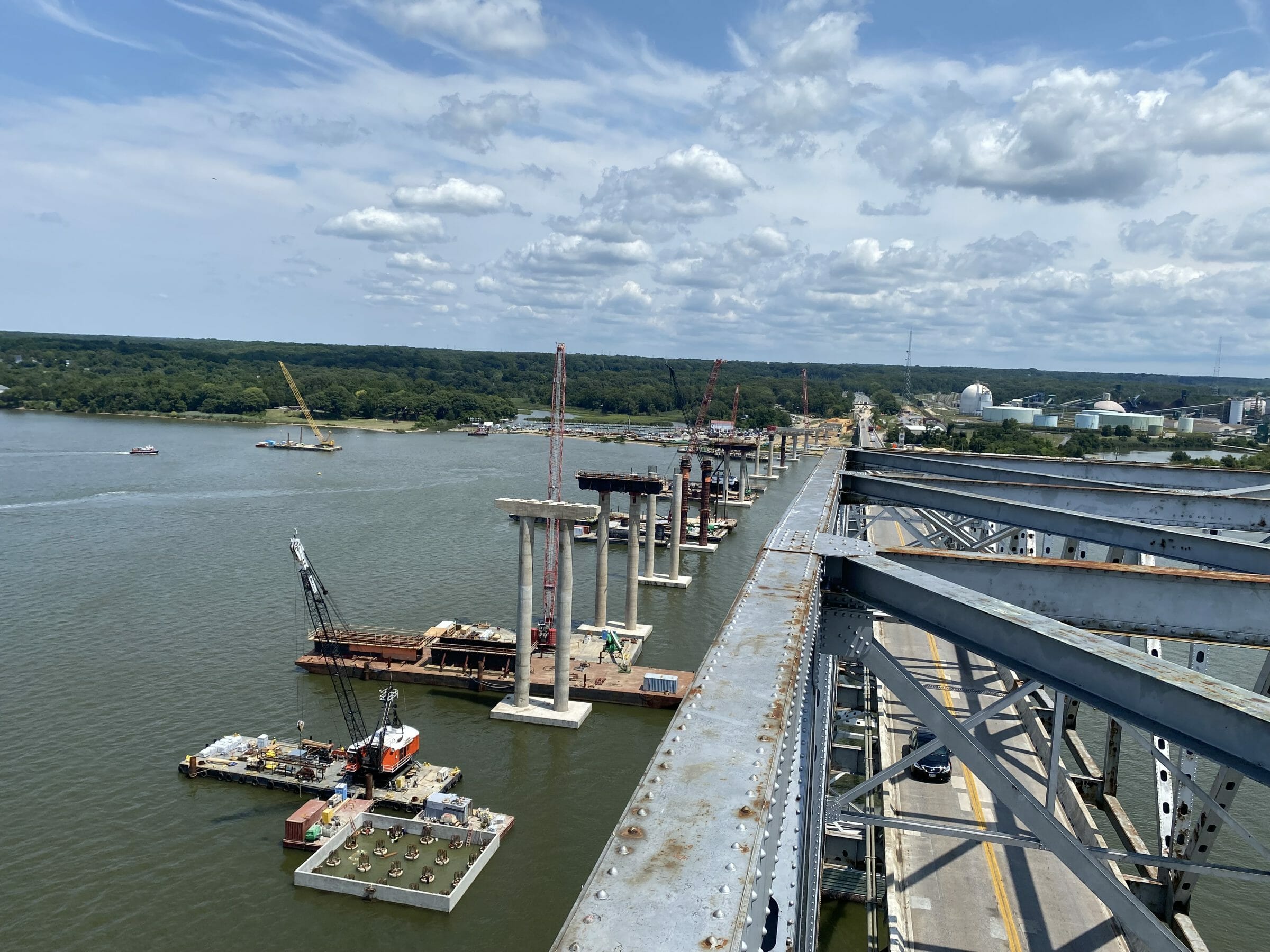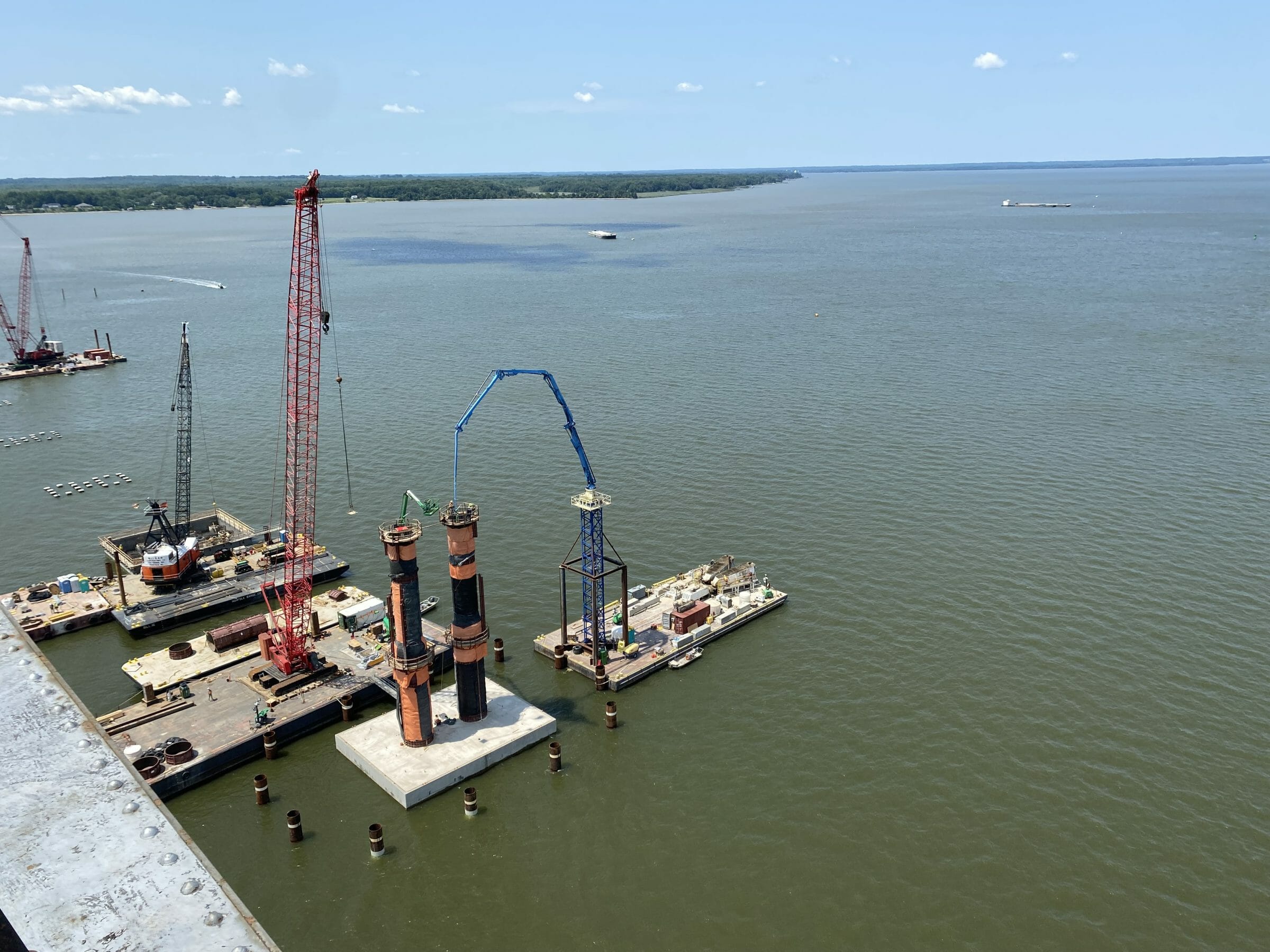 This project replaces the two-lane Harry Nice Bridge, originally built in 1940 and connects Newbury, MD and Dahlgren, VA, with a new 1.9 mile by 61-ft. wide structure over the Potomac River, including construction of approaches on each side of the bridge which extend half a mile on each side to realign traffic back onto existing US 301 and realignment of a secondary road. The improved span will have four 12-ft. wide driving lanes with 2-ft. shoulders (two lanes in each direction separated by a concrete median barrier wall), and the new height accommodates tall vessels coming through. The superstructure is comprised of a cast-in-place composite concrete deck supported by 79-in. and 95-in. concrete precast girders ranging 125-ft. to 150-ft. long. The main channel and flanking spans, which will be steel plate girders, are 238-ft. for a single section and will be spliced together in the main for a span length of 350-ft. The bridge has been divided into four sections: high-level east (closest to Maryland), main span, high level span, and low level (closest to Virginia). The new bridge will have a 100-year service life span, follow the same profile and is being constructed 100-ft. to the northwest of the original bridge. Once new bridge and roadway construction is complete, the original bridge will be demolished with some of it being used to create artificial reefs in the Chesapeake Bay watershed. PROJECT DETAILS: Project Owner: Maryland Transportation Authority Project Location: Dahlgren, VA / Newburg, MD Project Value: $462,957,000 Delivery Method: Design-Build IMG_4862 IMG_1280 Harry Nice IMG_4538 IMG_4537 Close IMG_4862 IMG_1280 Harry Nice IMG_4538 IMG_4537