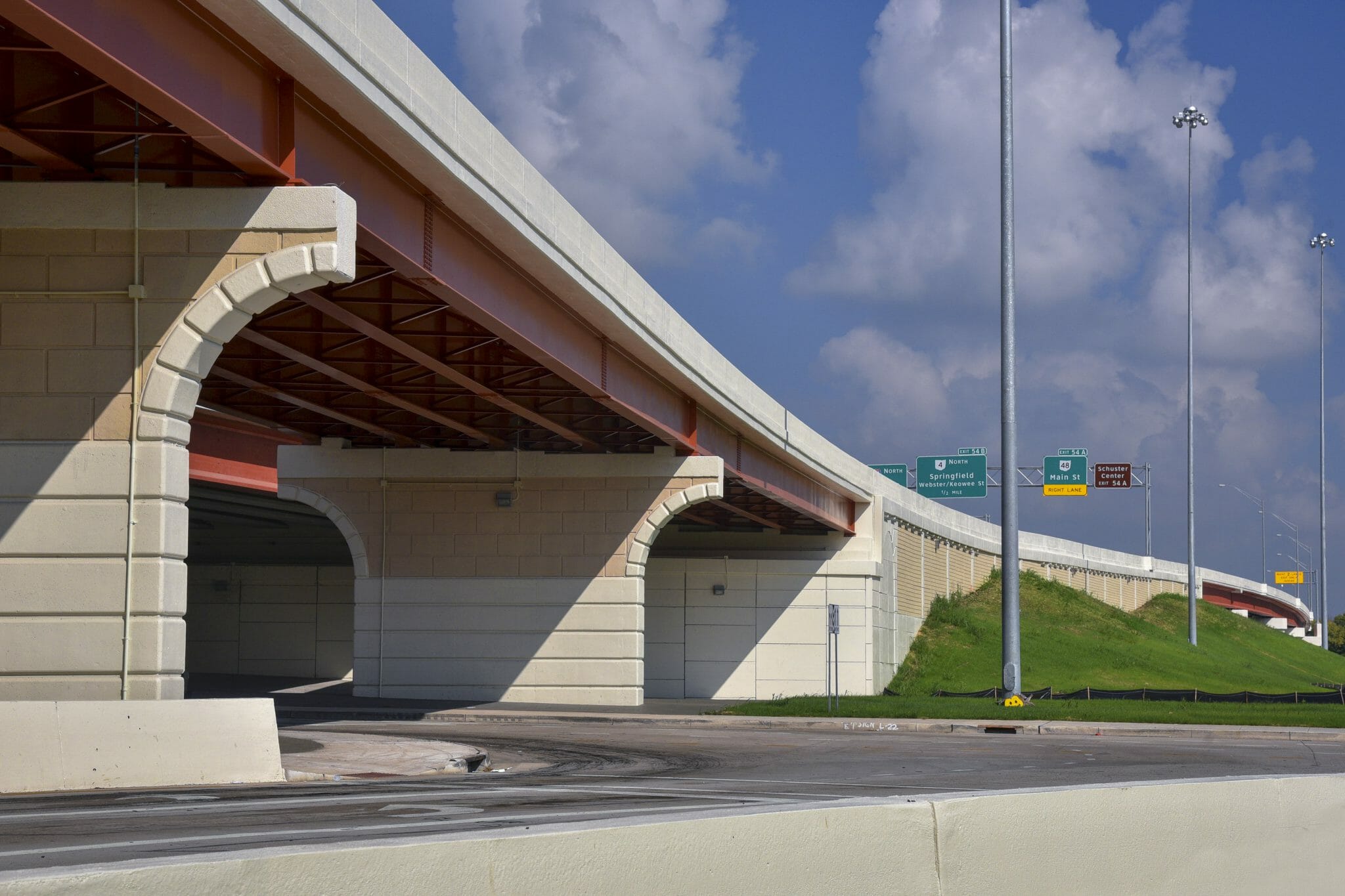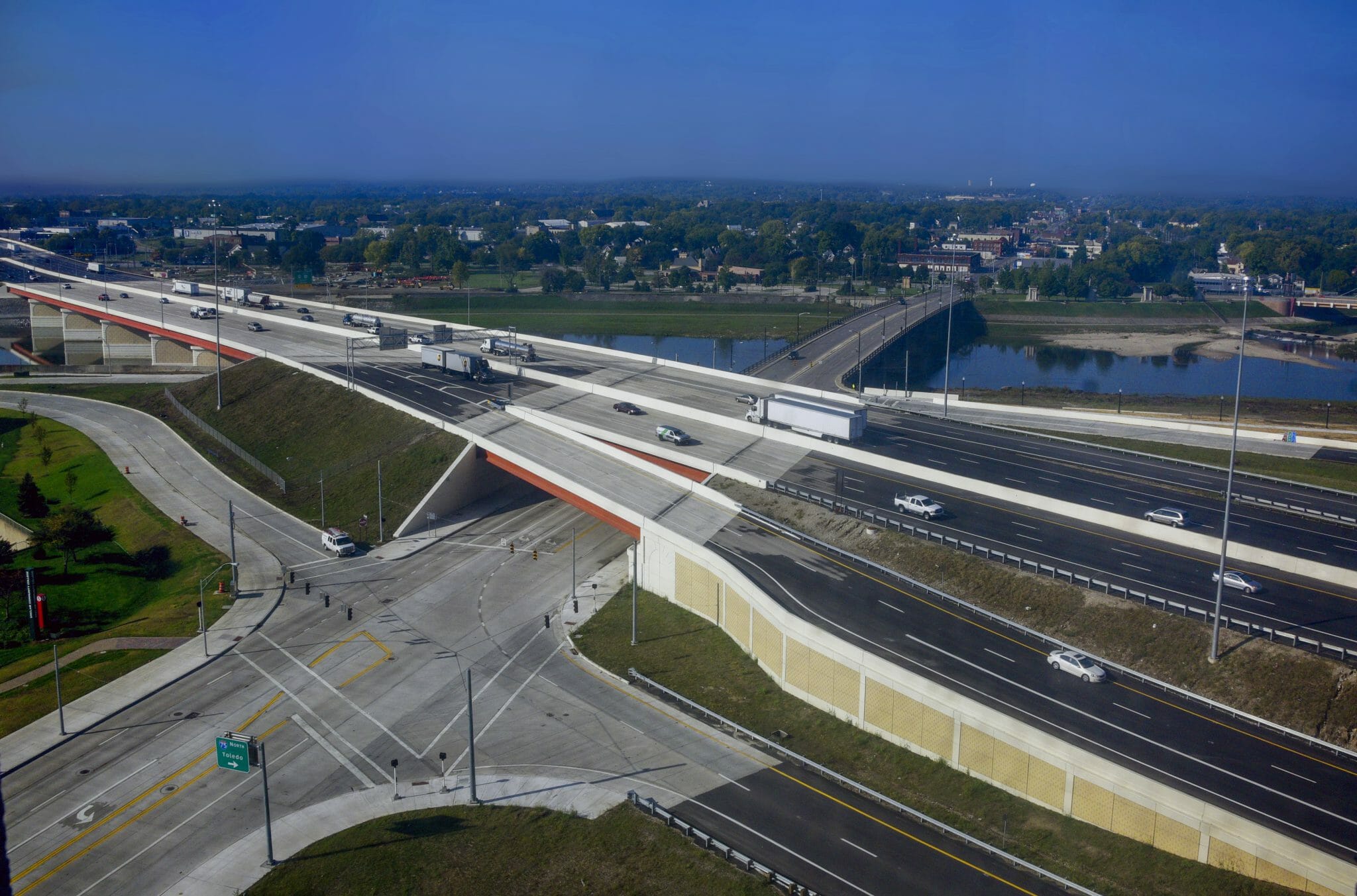 Transportation I-75 DAYTON MODERNIZATION PROJECT, PHASE 3 > Projects > I-75 Dayton Modernization Project, Phase 3 INSIDE THE PROJECT The third and final phase of the I-75 modernization through downtown Dayton, Ohio, was designed to relieve congestion for the 130,000 vehicles that travel the route every day. Kokosing created three continuous lanes in each direction by constructing 11 structures, two of which span the Great Miami River. A simplified approach to the reconfigured downtown interchanges relieves rush hour traffic and also reflects modern aesthetics in the urban community. Through careful preplanning, partnering with all stakeholders, and the efforts of our dedicated management team and workforce, Kokosing completed the project a year early. PROJECT DETAILS: Project Owner: Ohio Department of Transportation Location: Dayton, Ohio Project Value: $125,000,000 Delivery Method: Design-Bid-Build CAPABILITIES: Beam/Girder Erection Bridges Piling PROJECT AWARDS INCLUDE: The project was a recipient of the 2017 Don Conaway Partnering Award – Honorable Mention. Close