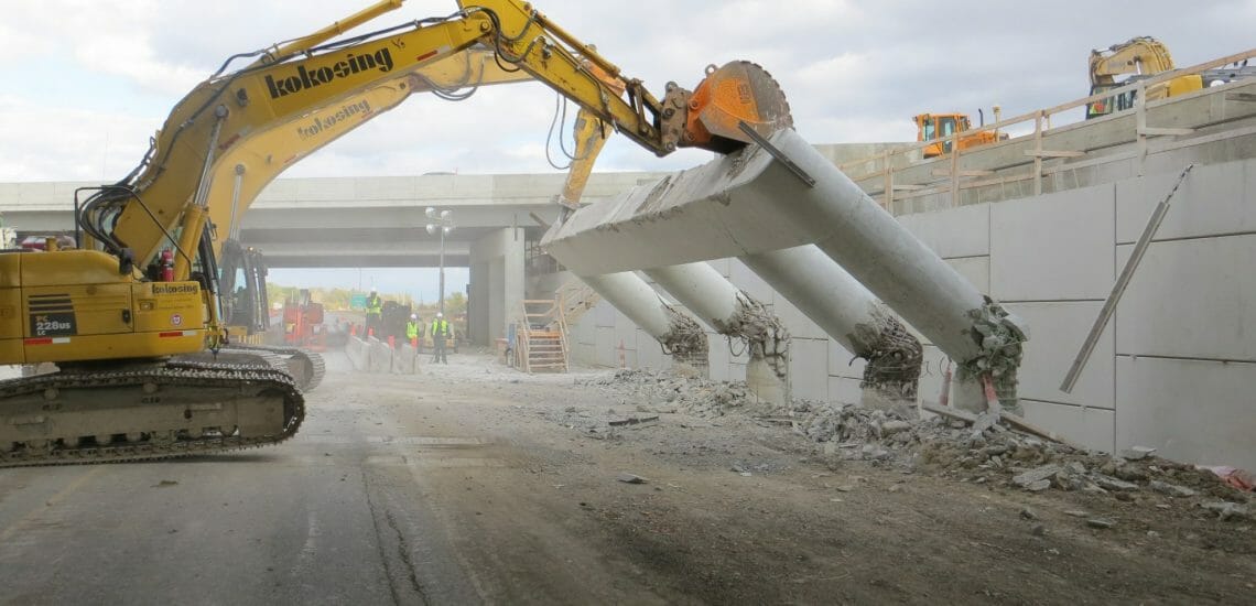 What makes this project unique is that the two concrete beam bridges were built off-line on significant falsework next to the existing bridges that still carried traffic. During a single weekend closure, the existing bridges were demolished and the new bridges were slid into place and reopened. This was a first for the State of Ohio!