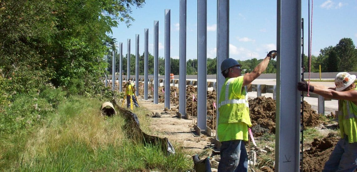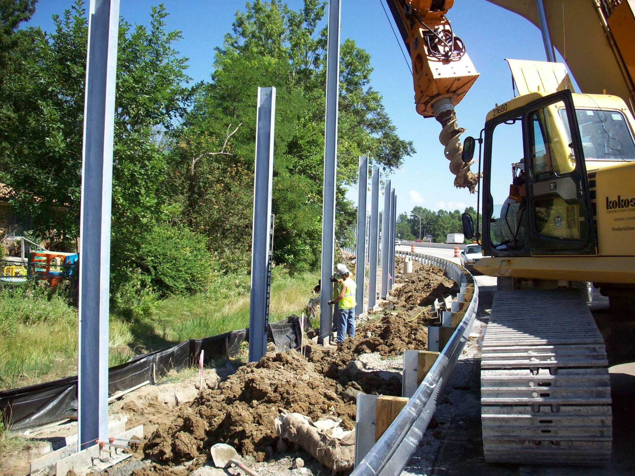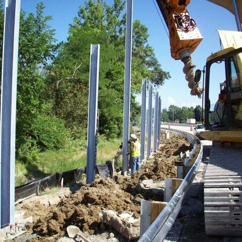 On the $6.4 million project, Kokosing self-performed both the foundation drilling and erection of the noisewall. The foundation work included the drilling of 14,000-linear-feet of 24-inch diameter shafts and installation of 900 galvanized H-piles – placed in concrete – for noisewall support.