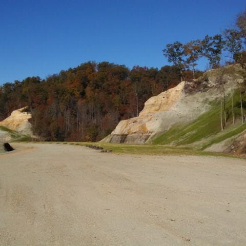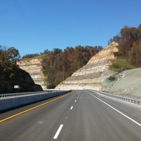 Building Kentucky’s largest earthwork project. INSIDE THE PROJECT Kokosing constructed three similar projects in southeast Kentucky totaling over 40 million cubic yards of mass earthwork. That is enough dirt and rock to fill the Ohio Stadium (Horseshoe) nine times or cover the interstate, 24 feet wide by 4 feet deep, from Columbus, Ohio to Orlando, Florida! Due to their similarity and proximity, Kokosing managed these projects together as one large project. The earthwork included extremely difficult terrain and accessibility challenges with significant drilling and rock blasting. The major earthwork from two mountains had a combined 20 million cubic yards of excavation, and the vertical difference in one was almost 800 feet. To allow Kokosing’s heavy equipment access to the project site, steep haul roads were used that traveled back and forth down the mountain to the bottom fill area. Other quantities included 680,000 square yards of pre-splitting, 40,000 cubic yards of Class IV channel lining for ditches, 875 linear feet of cast-in-place box culvert, almost four miles of culvert and storm pipe installation, 790 acres of site clearing, and 4,700 linear feet of concrete median barrier wall and curb. PROJECT DETAILS: Project Owner: Kentucky Department of Transportation Location: Martin and Pike Counties, Kentucky Project Value: $133,000,000 Delivery Method: Design-Bid-Build CAPABILITIES: Mass Excavation Close