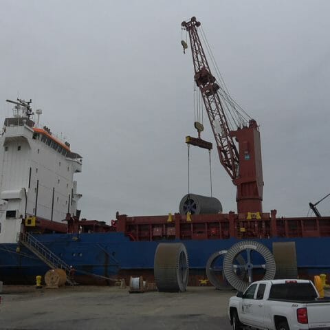 The subaqueous route included 2,600’ of near shore tidal flats and crossing a deep navigation channel.  The tides ranged was from +8’ at high tide and -1.2’ at low tide.  The ebb and flow of tides impacted our ability to work, especially on the tidal flats during low tide cycles.