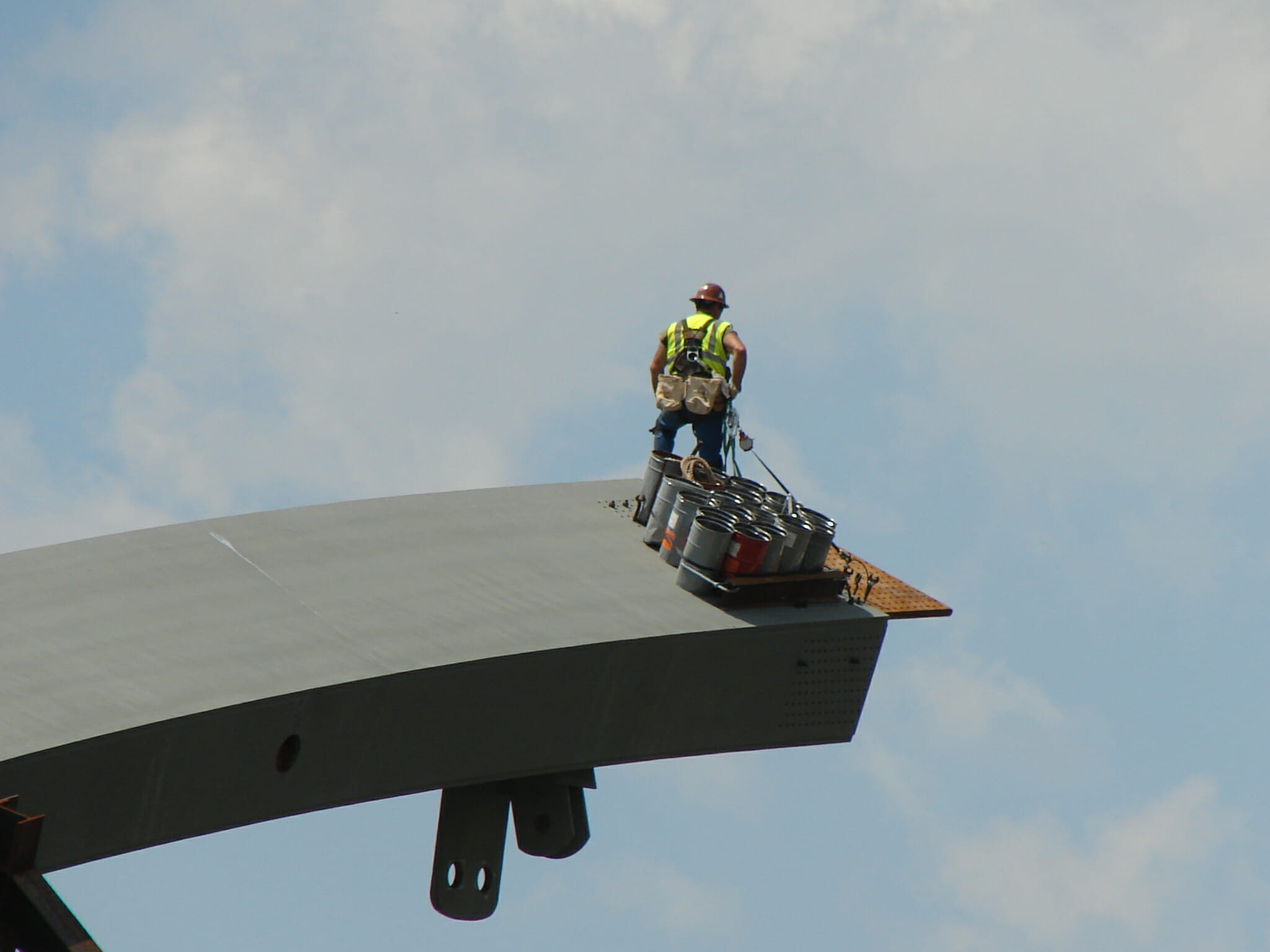 The structure’s focal point is a fabricated steel arch that spans the bridge’s main channel and supports the pedestrian walkway. Peaking at 60-feet above the deck, the arch is connected by rigid steel struts and cables. Exterior aesthetics also include a bikeway and scenic overlook. Roadway and utility work were also included on the approaches to the bridge.