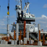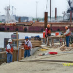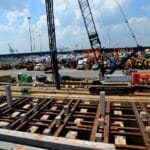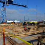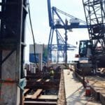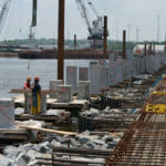 • Other major activities included setting and driving 30 inch square concrete piles, setting precast caps and deck panels on the concrete piles, formwork for cast-in-place caps at the Ro-Ro, slab-on-grade concrete pavement, and rip rap slope protection.