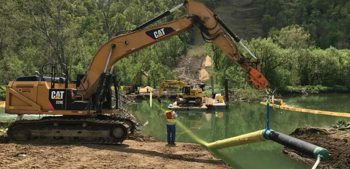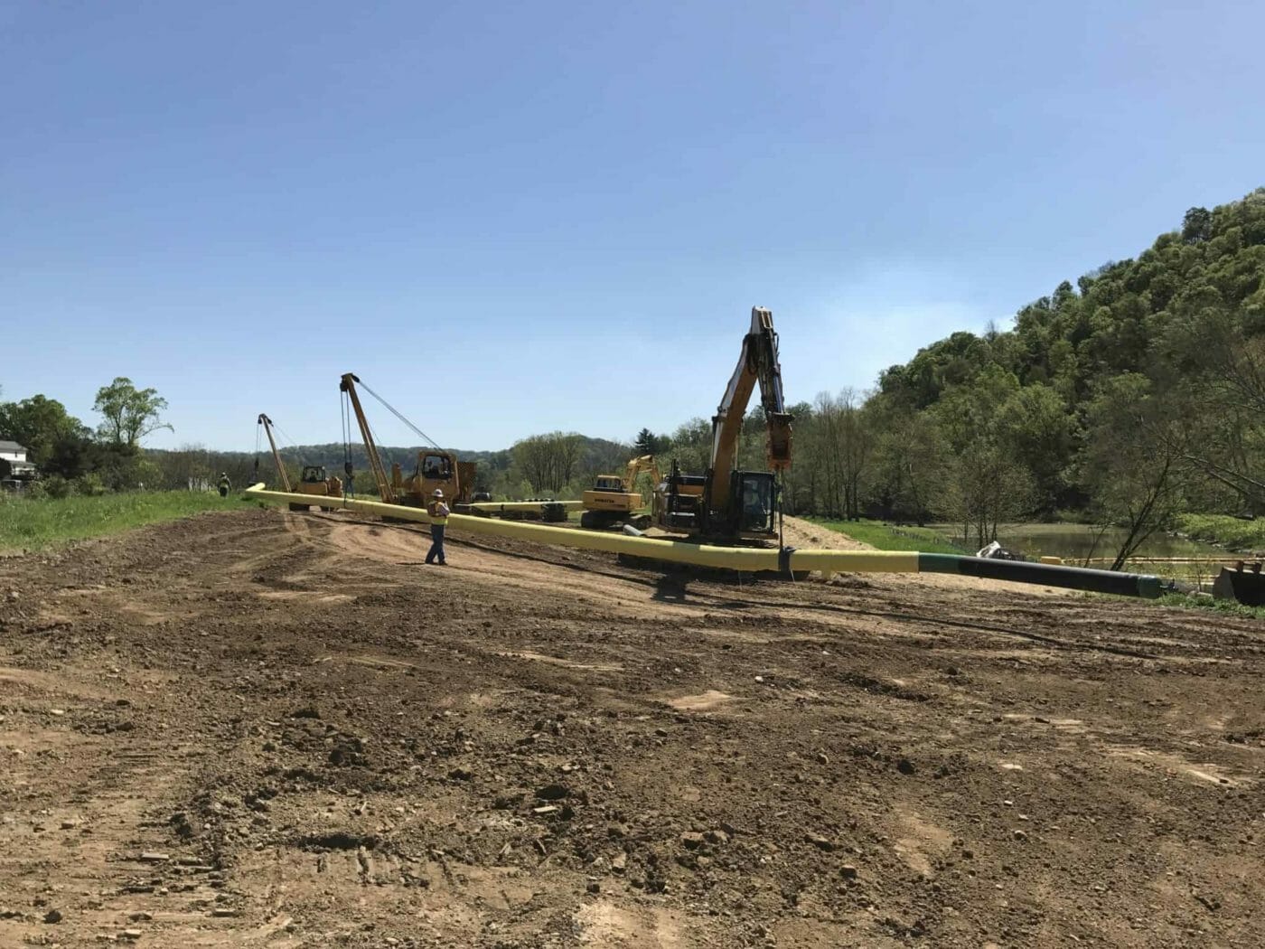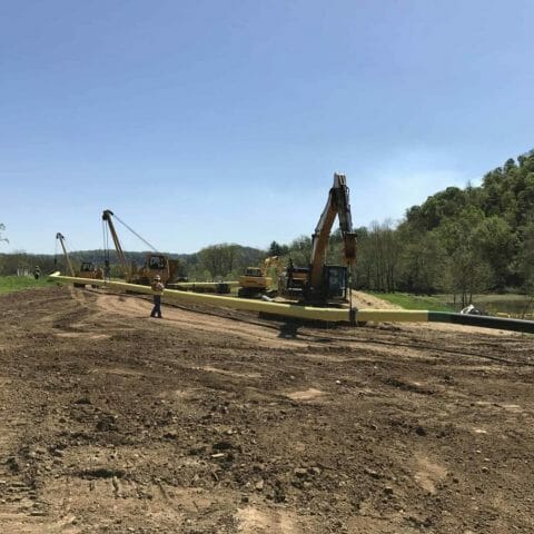 In pipeline construction sometimes the greatest challenges are placed by Mother Nature, everything from steep slopes to bodies of water. Each one requires its own unique approach. Our team members look at each of these challenges as an opportunity to tackle something new or improve on something old. IKPS has completed hundreds of river and wetland crossings some more challenging than others. In 2017, IKPS completed a 180-lineal-foot-wide, open-cut stream crossing installing three parallel gas lines, two, 16-inch creek sections and one, 24-inch creek section. Along with the complex configuration of the pipe crossing and working around an active gas line, IKPS also faced limited access from the existing railroad track on one side of the river and a 1,000 lineal foot winch hill on the other. With a lot of planning, coordinating with the customer’s project team and creative thinking, the project was a success.