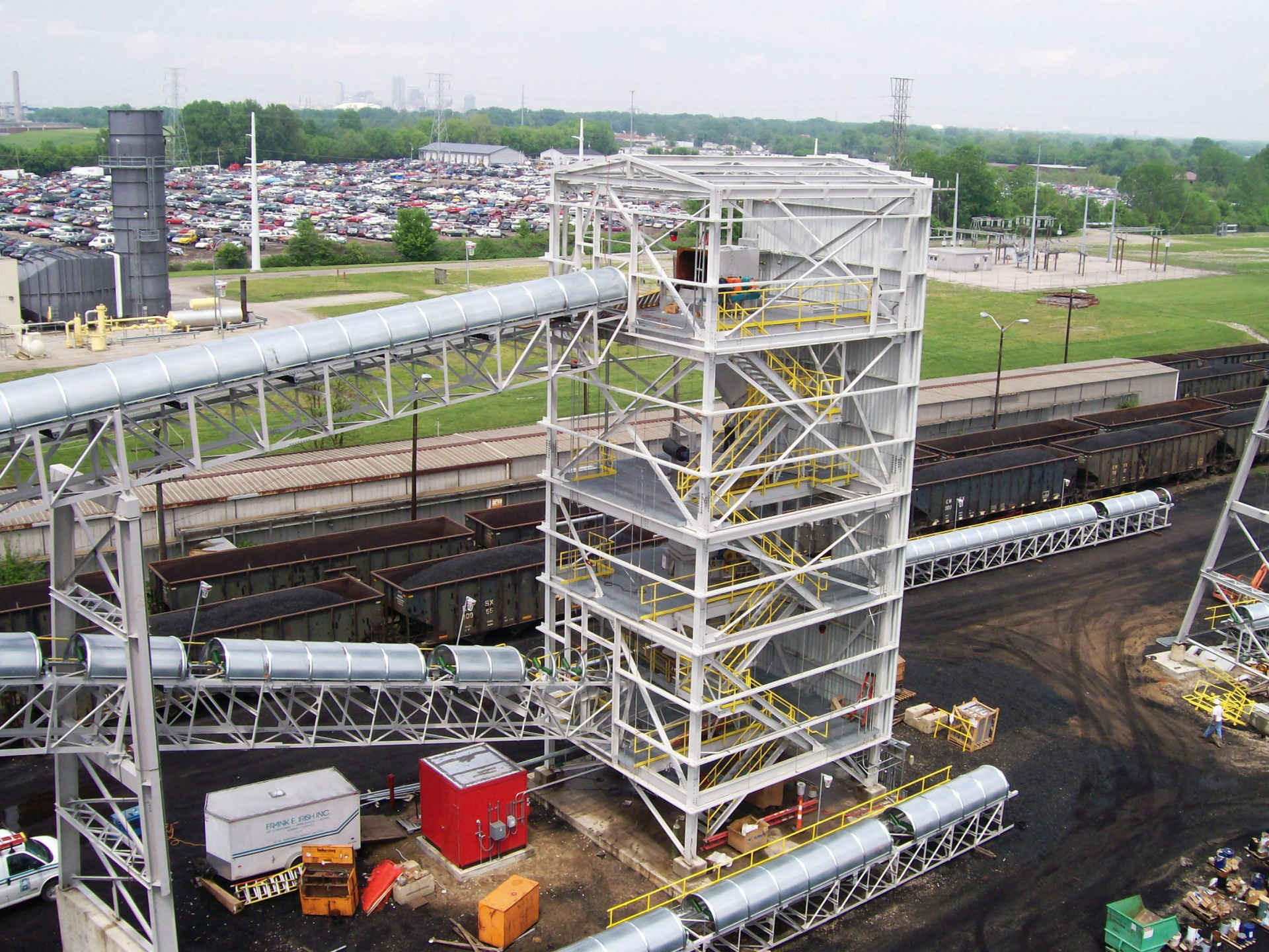 Kokosing’s Design-Build team provided turn-key solutions for a coal handling power plant project in Indianapolis. Main work components included foundations, structural, mechanical, electrical/control system, process piping, fire protection, and dust collection. Kokosing assembled and erected conveyors, various towers, hoppers, and tunnels. The material handling system was installed in an operating plant, which required three, well-planned and executed plant shutdowns. One of the shutdown milestones included the construction of a 22-foot-deep x 300-foot x 16-foot cast-in-place tunnel with three draw-down hoppers, a 305-foot x 7-foot escape tunnel, transfer towers, and over 1,000 feet of 42-inch wide belt conveyor. Early completion of the project was critical to the client, so incentives for early completion were included in Kokosing’s contract.