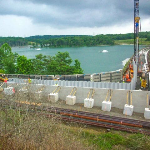 INSIDE THE PROJECT This project consisted of raising the existing Earthen Dam using precast concrete mechanically stabilized earth (MSE) wall panels and vinyl sheet piling (VSP) as a cutoff wall. The VSP was installed at a depth of 30 feet through a bentonite slurry wall that ran the entire length of the dam. The dam raising was approximately 1,600 feet long and 13 feet high. This project also included the construction of a mile long access road, existing spillway and spillway inlet raising. PROJECT DETAILS: Project Owner Private Power Generation Client Location Eastern Ohio acd3 acd5 acd4 acd1 acd2 Close acd3 acd5 acd4 acd1 acd2