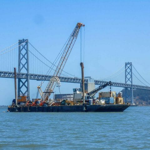 Downtown San Francisco is a very busy and highly developed area. The owner investigated three options for the 240kV installation. Two of the options were through the city streets of San Francisco. Each of these routes crossed the I-280 corridor and other sensitive areas. These options were not economically viable. Moving the lay route out into the bay circumvented most of the logistical problems associated with navigating this construction through the city.