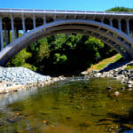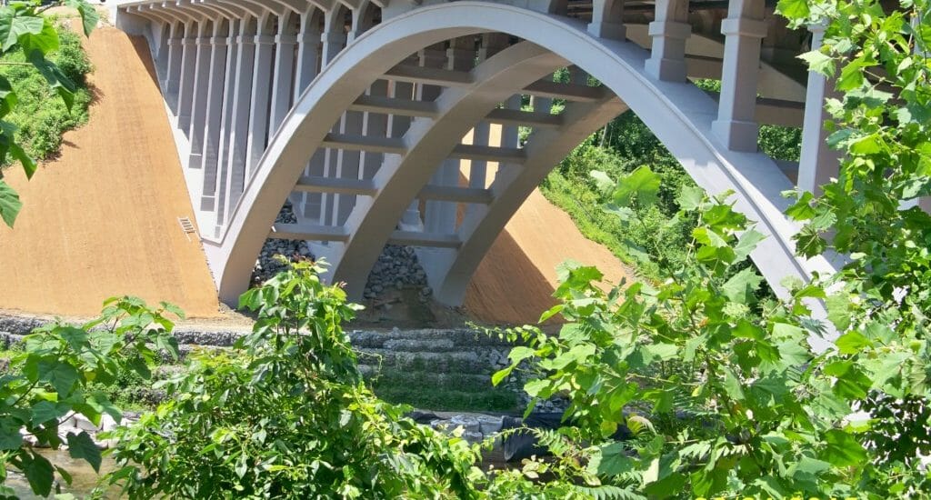 • A historic open-spandrel concrete arch bridge that passes through Patapsco Valley State Park and spans above a stretch of the Patapsco River.