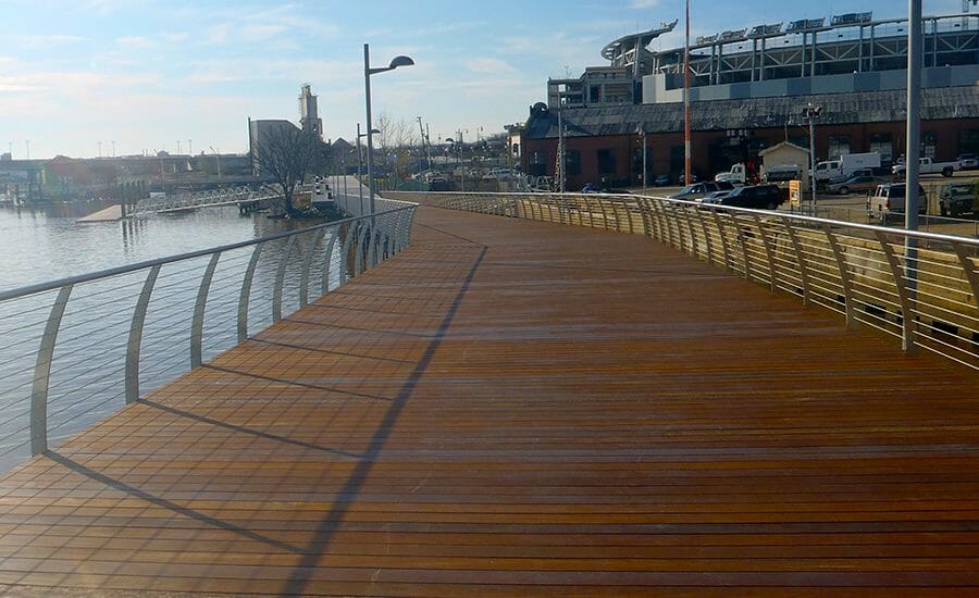 KEY CHALLENGES & PROJECT DETAILS Construction of waterfront park linking the Washington Nationals’ baseball park to the Anacostia River, creating a continuous one-mile Riverwalk train publically accessible within the Capitol riverfront Construction of pier, docks, boardwalks and park Construction of 30’ wide by 374’ long decorative boardwalk, consisting of a timber and metal deck on a structural steel frame Installation of concrete grade beams and 58 14-inch pre-stressed concrete piles to support the boardwalk Construction of the Yard’s Park Pedestrian Bridge, 20’ wide by 700’ long, connecting to existing historic pump house and Diamond Teague Park., Yard’s Park, and Nationals Park Construction of aluminum gangways, attaching the main floating piers to the shoreline Installation of decorative handrails, bridge decking, fire water lines, and floating plant islands Project required 10 to 12-hour work shifts, 6 days a week until completion PROJECT DETAILS: Project Owner: Washington, D.C. Department of Transportation Deputy Mayor’s Office Location: Intersection of First Street and Potomac Avenue, SE, in front of Nationals Park Anacostia River, Washington, D.C. Close